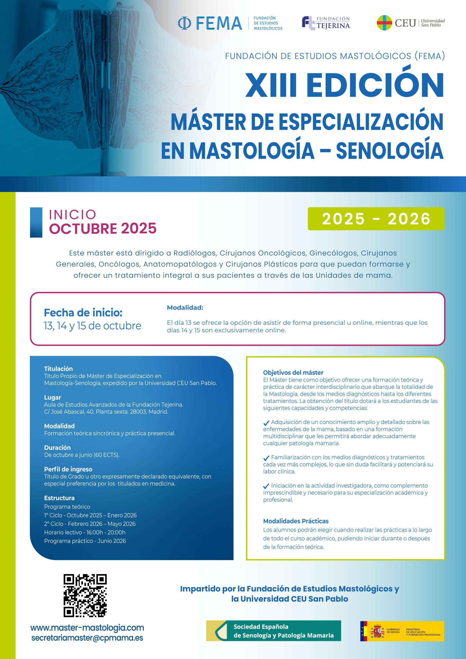 XII EDICIÓN MÁSTER DE ESPECIALIZACIÓN EN MASTOLOGÍA-SENOLOGÍA